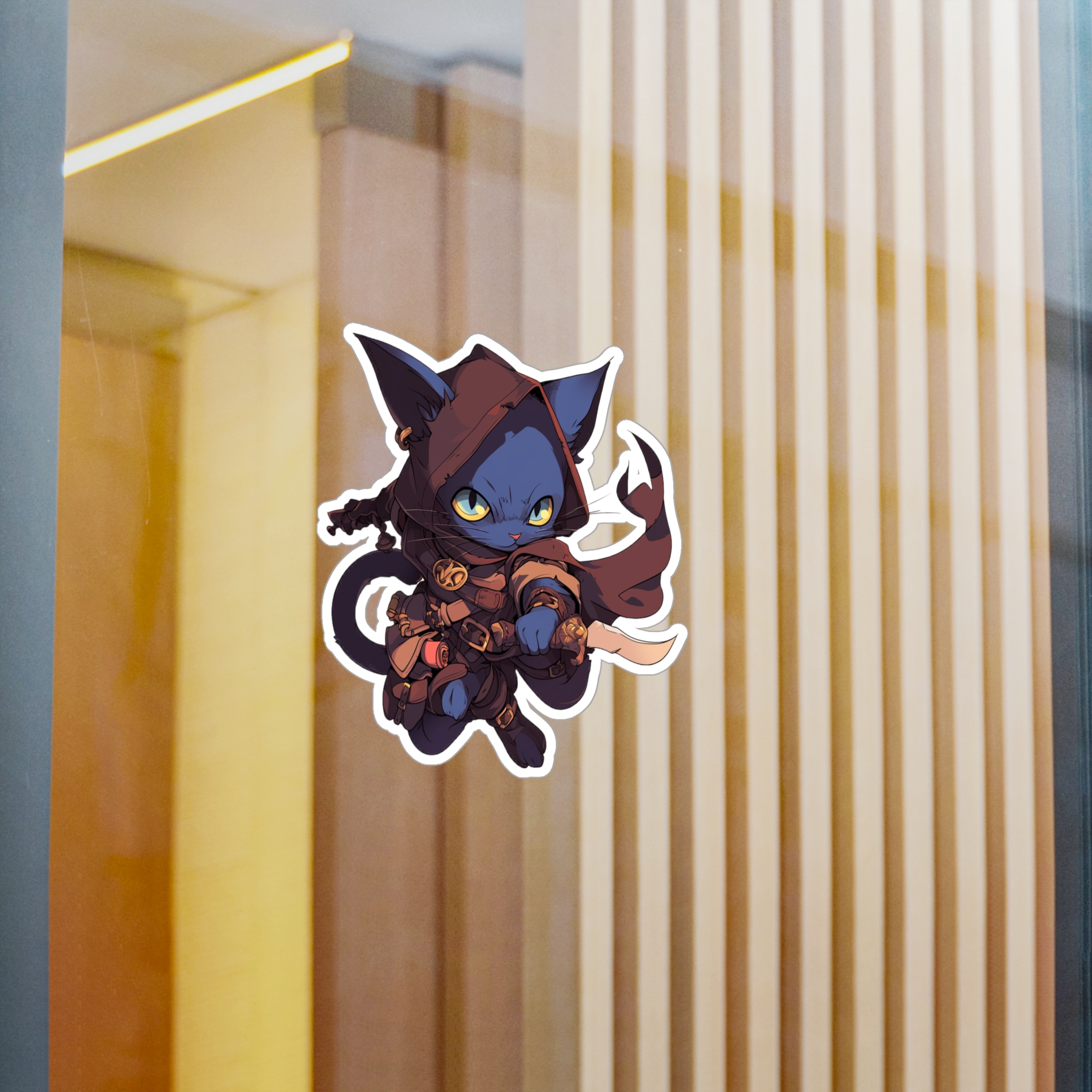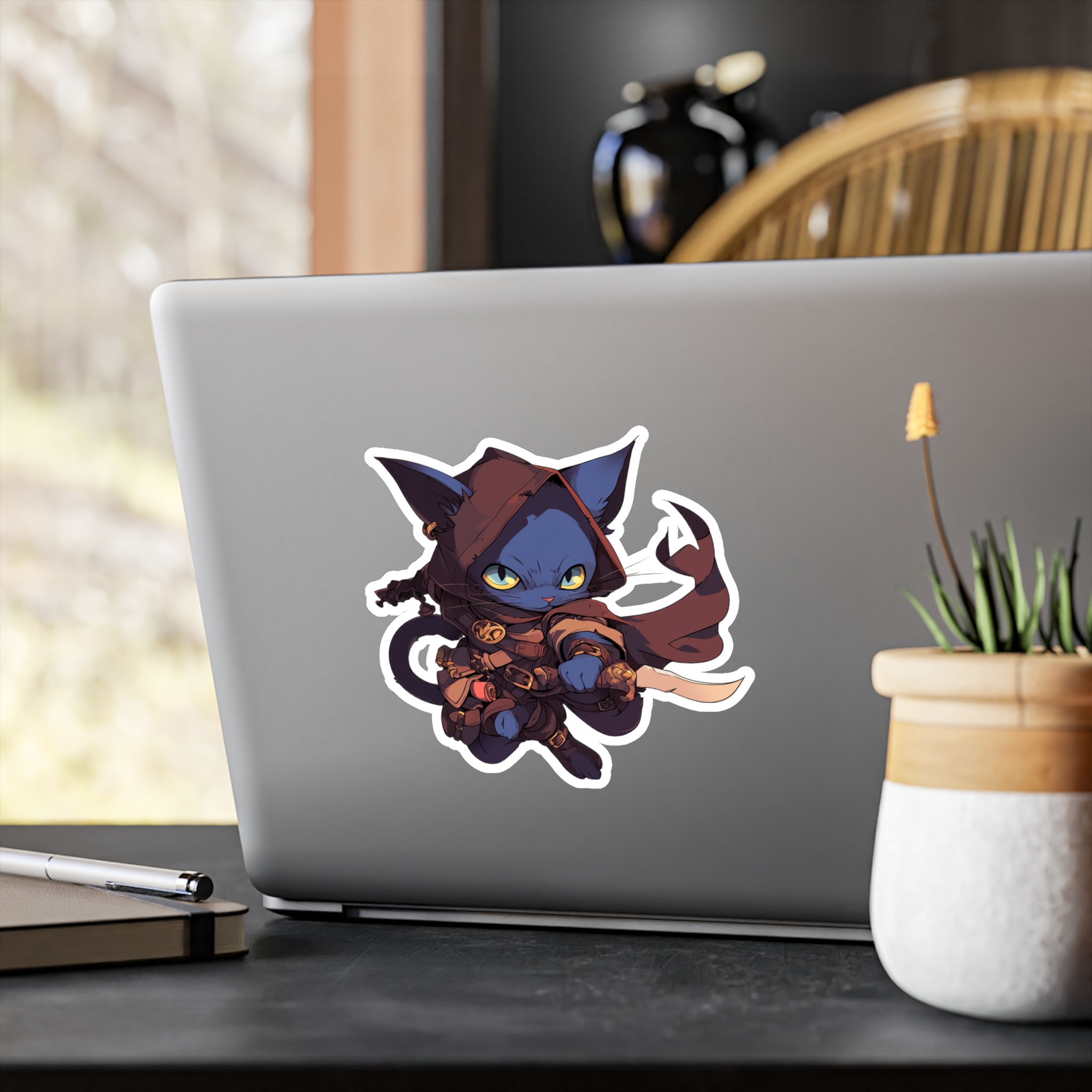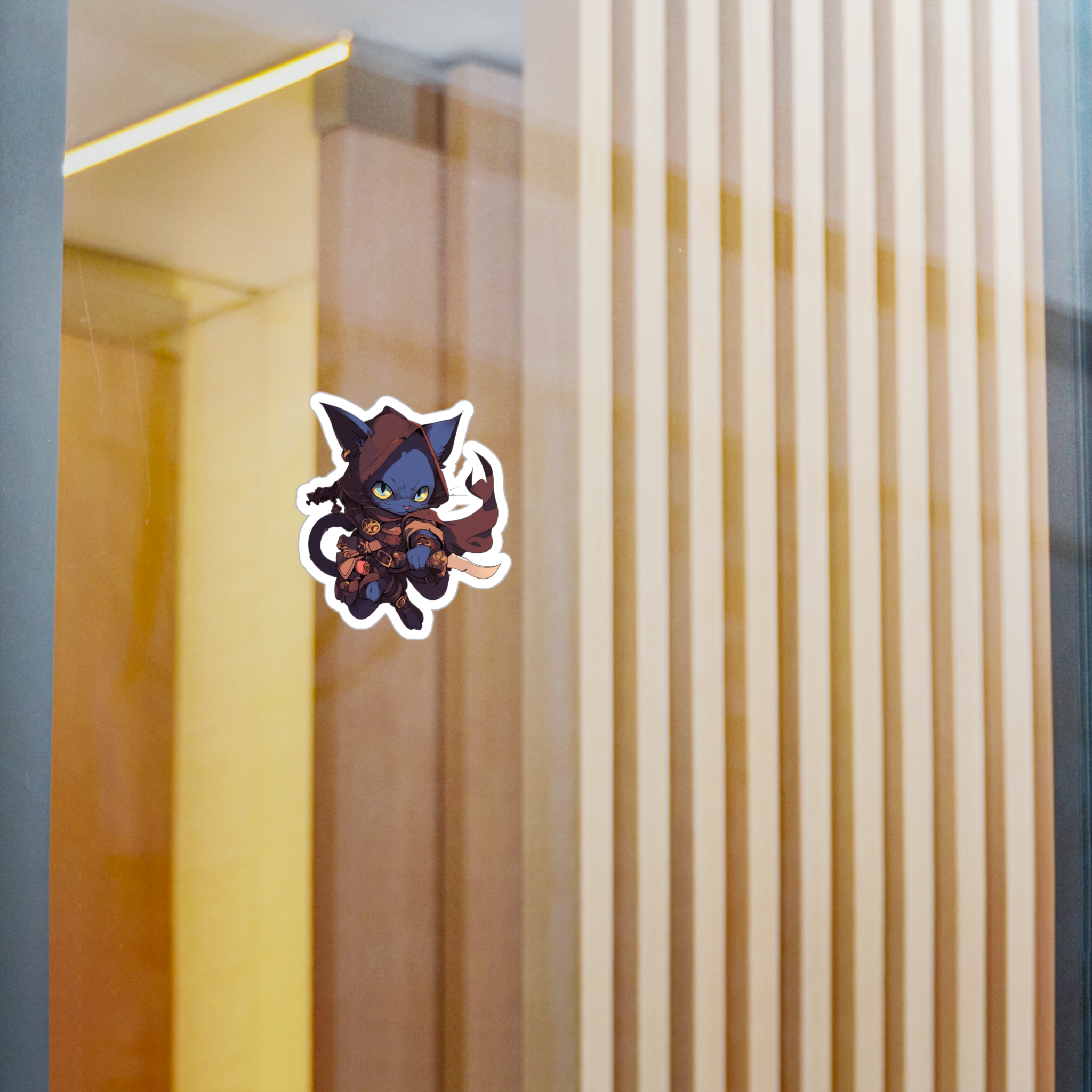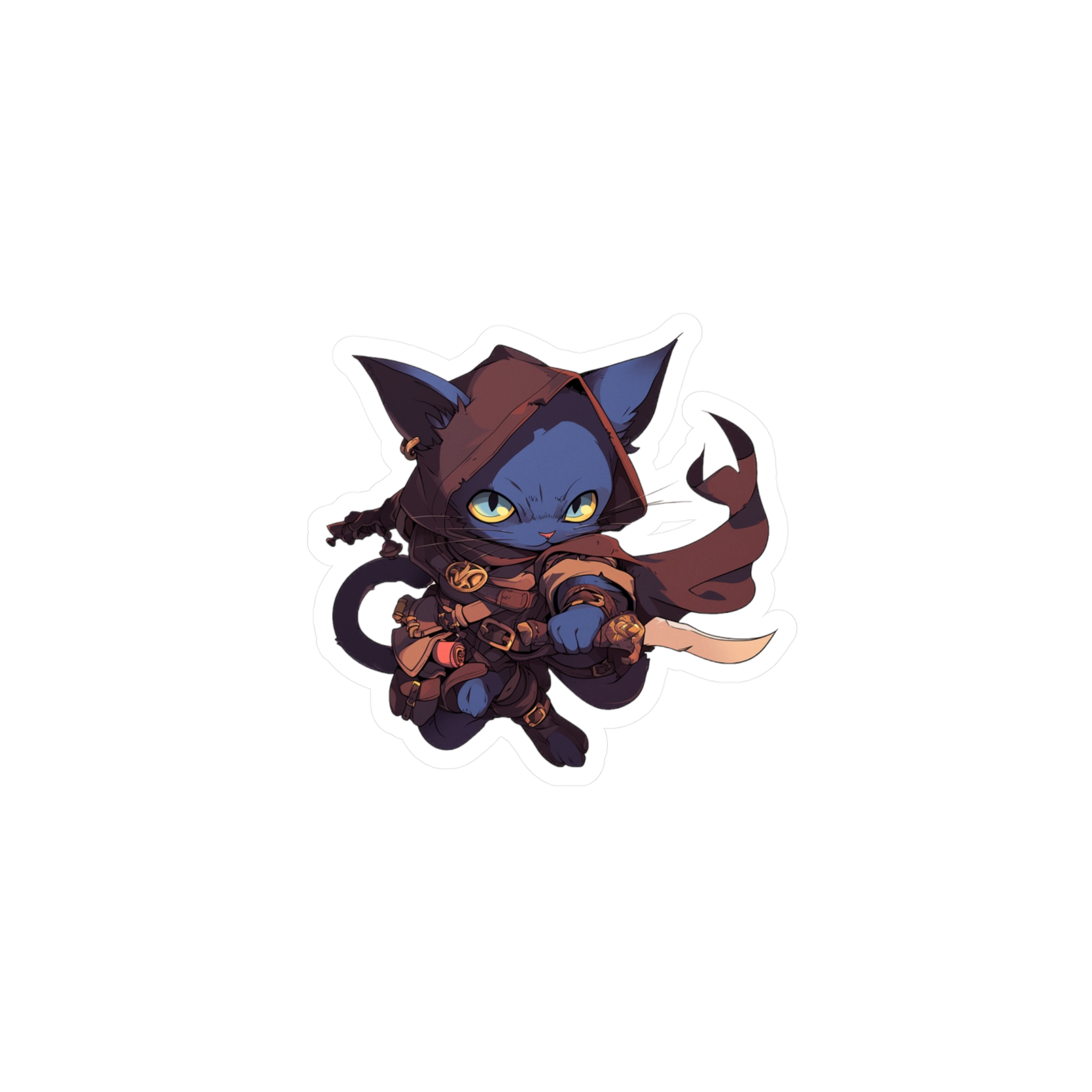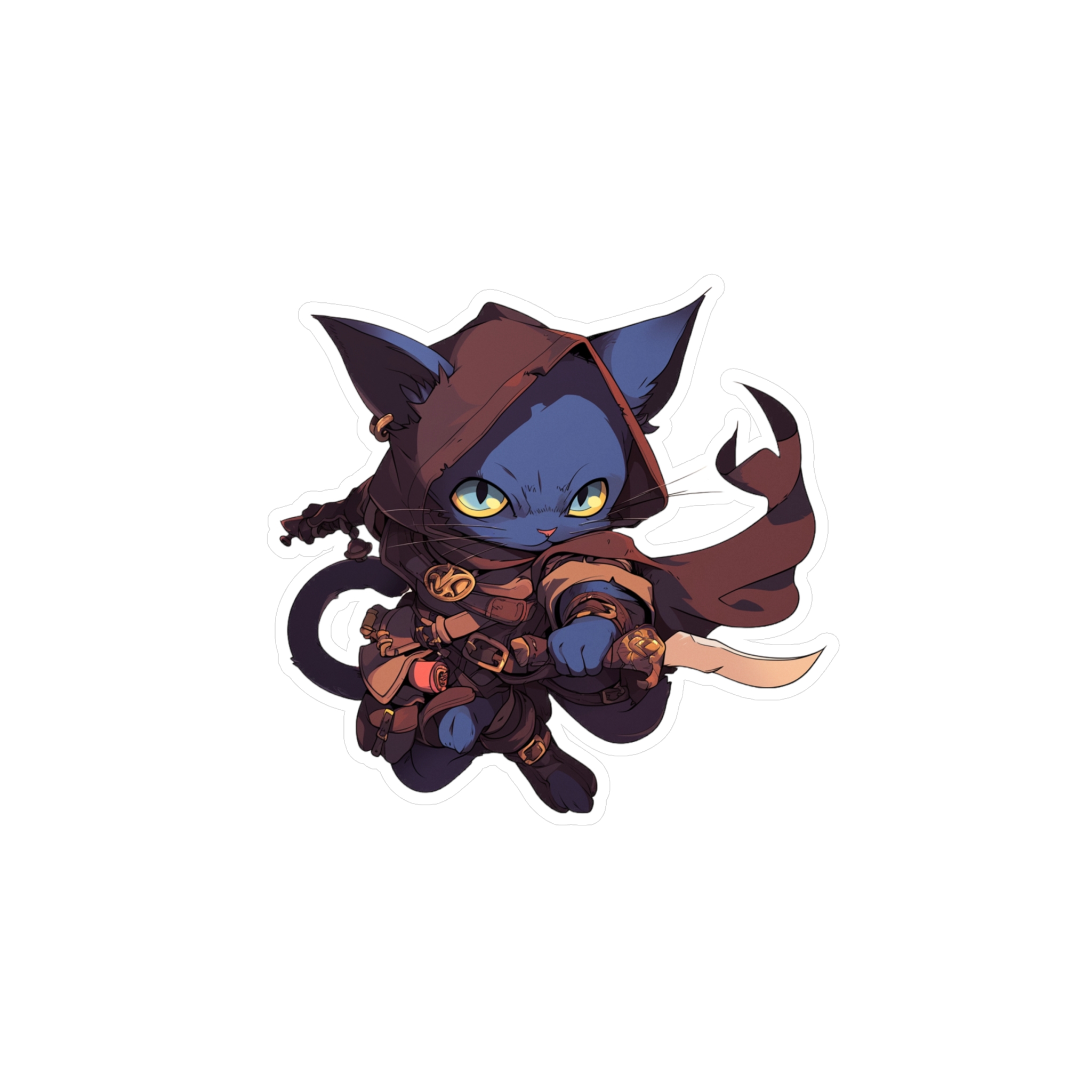 Sneak into style with this kiss-cut vinyl decal featuring a stealthy and mischievous rogue kitten! Perfect for fans of Dungeons and Dragons, this daring design adds a touch of cunning charm to your laptop, water bottle, journal, or other everyday gear. The ideal gift for RPG enthusiasts, cat lovers, and adventurers who appreciate a little flair for the dramatic—perfect for game nights, birthdays, or holidays!