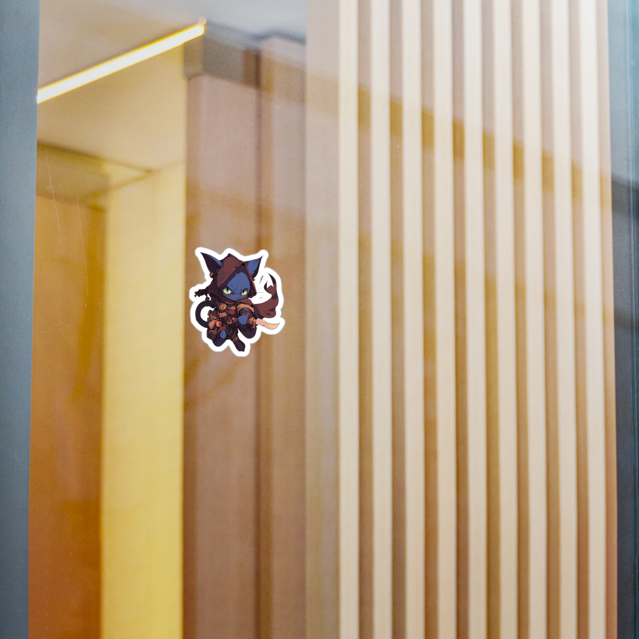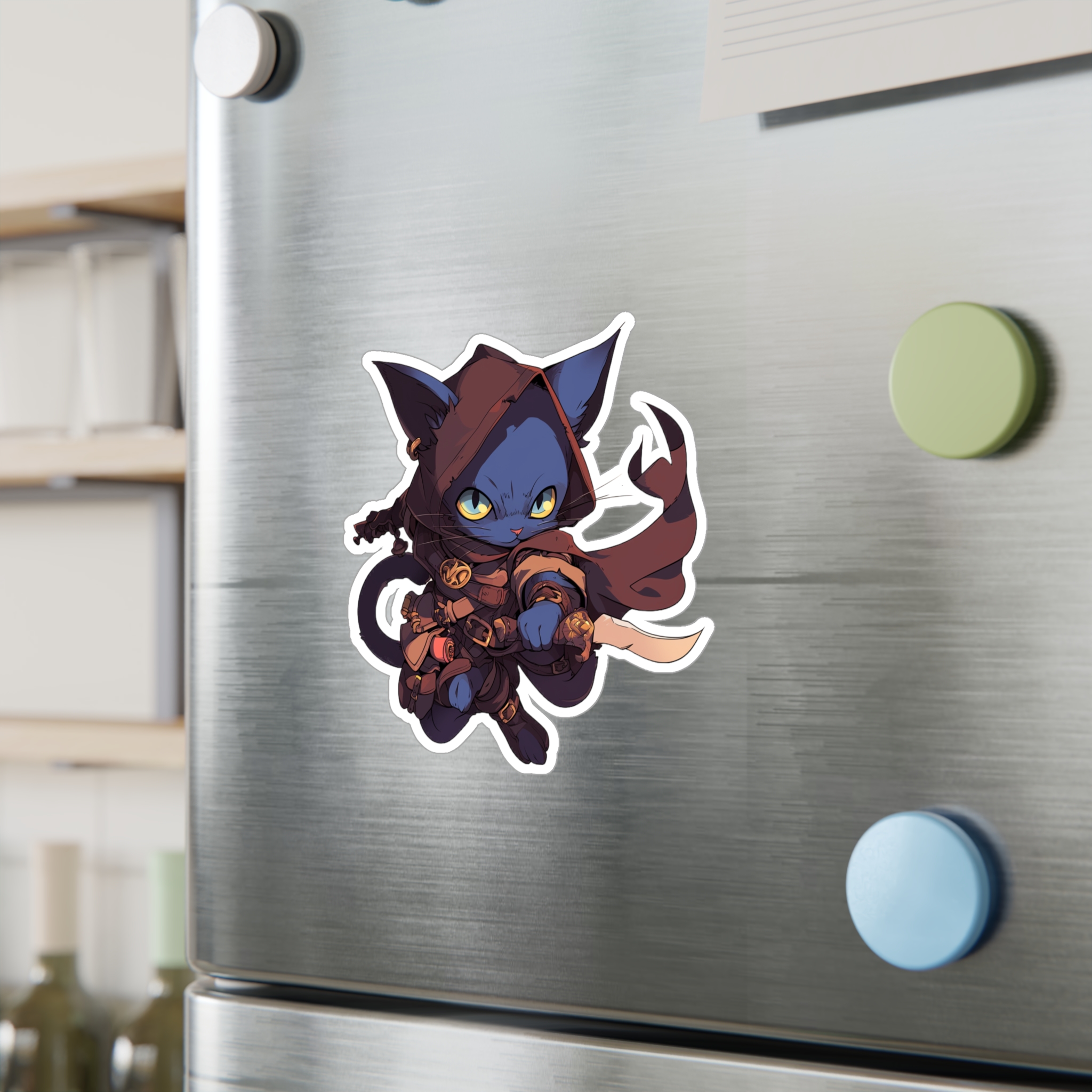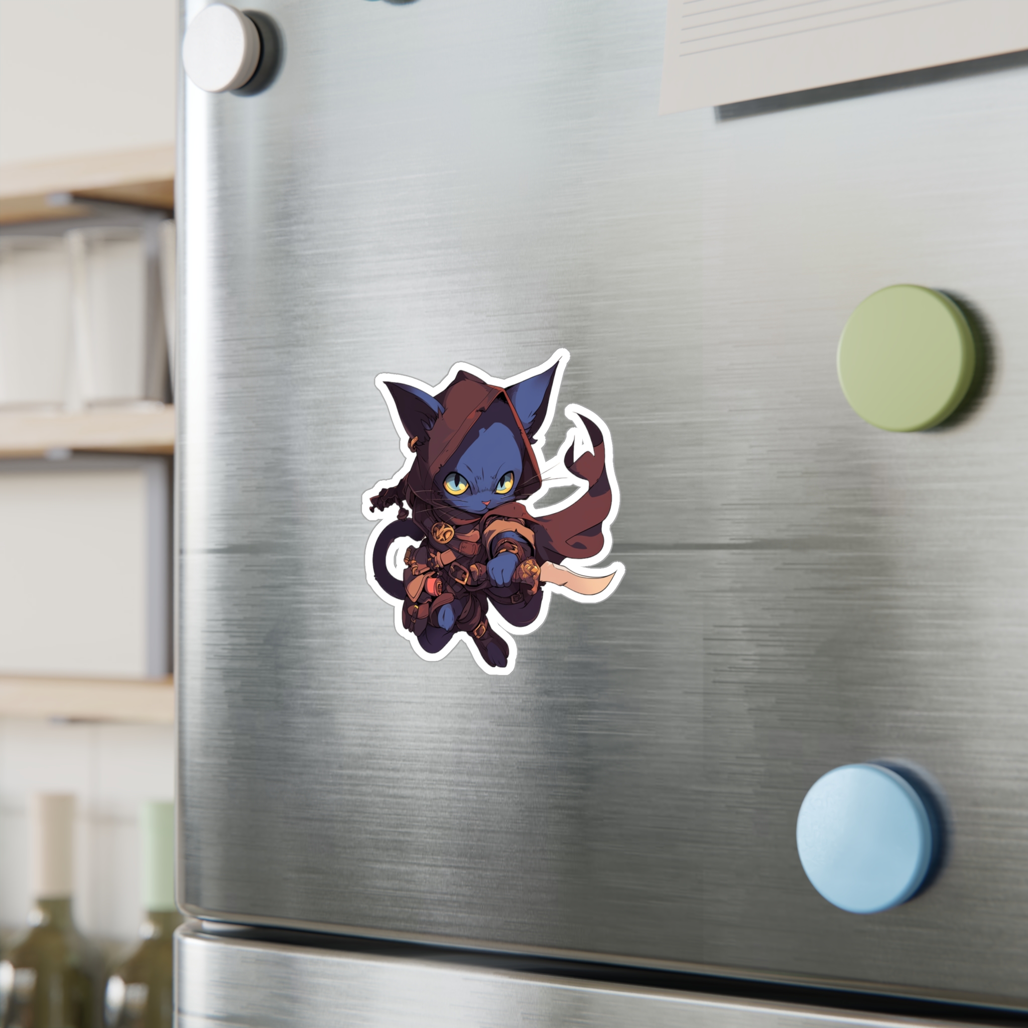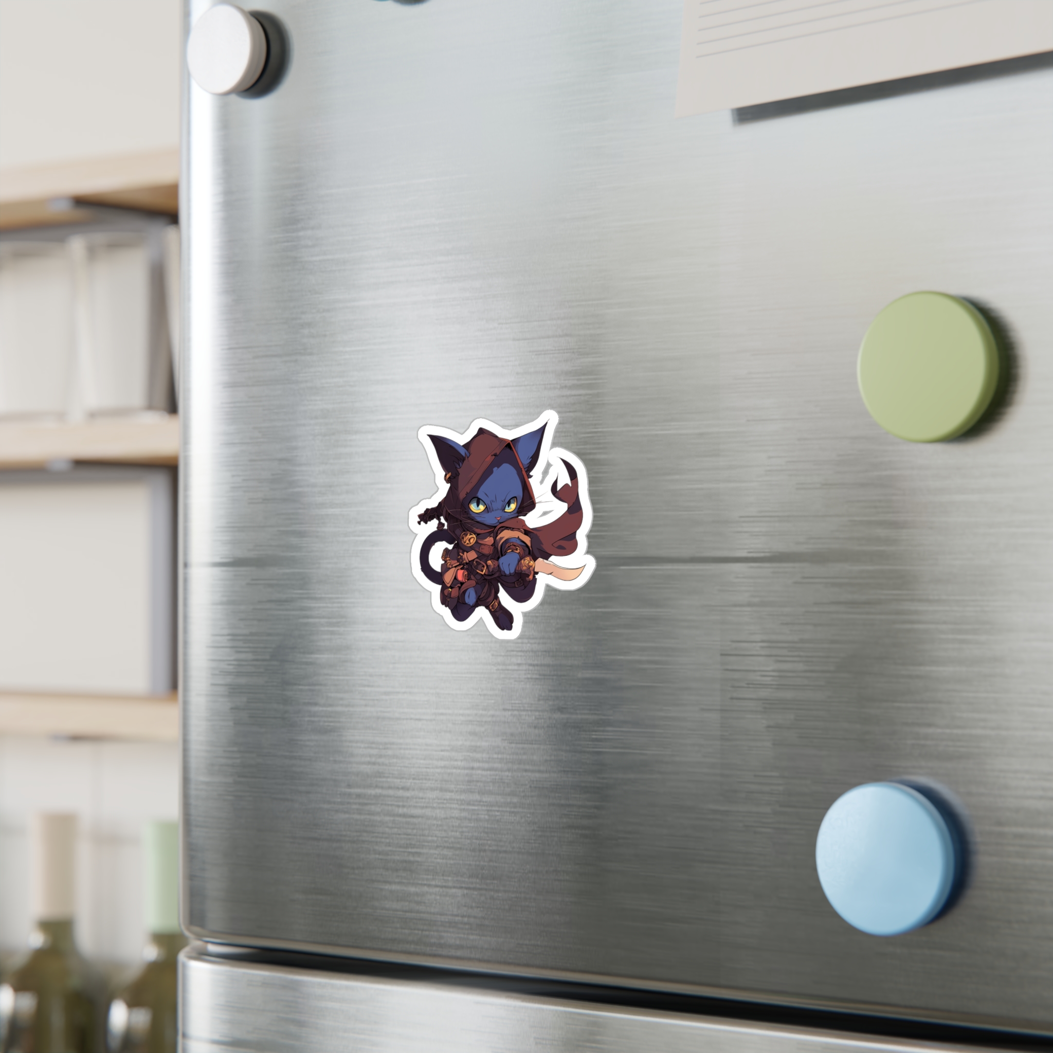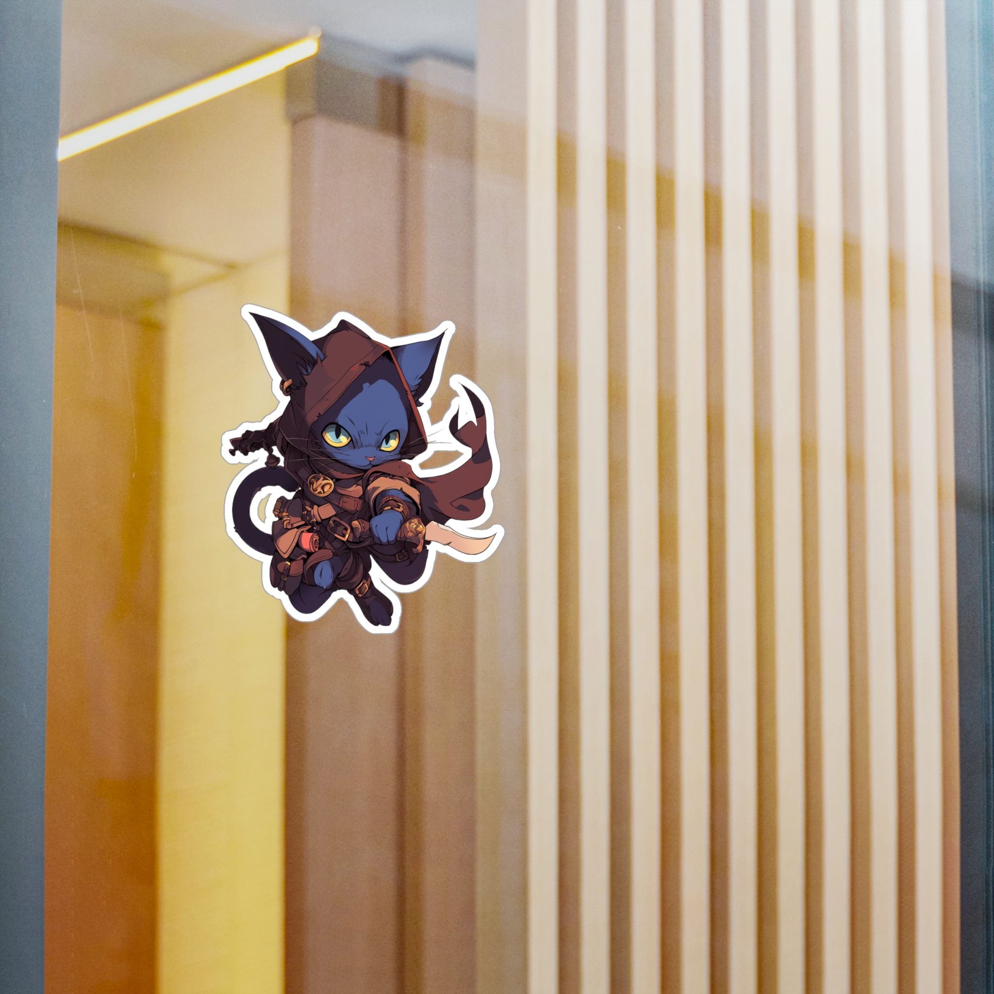 Sneak into style with this kiss-cut vinyl decal featuring a stealthy and mischievous rogue kitten! Perfect for fans of Dungeons and Dragons, this daring design adds a touch of cunning charm to your laptop, water bottle, journal, or other everyday gear. The ideal gift for RPG enthusiasts, cat lovers, and adventurers who appreciate a little flair for the dramatic—perfect for game nights, birthdays, or holidays!